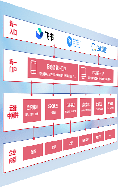 对协作平台提供支持服务,,,支持企业应用与协作平台对接,,,,包含组织同步、、、消息集成、、、待办集成等。。。支持目前主流的协作平台:钉钉、、、企微和飞书。。。。